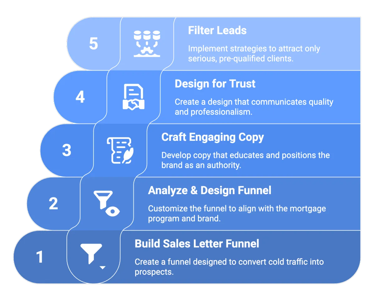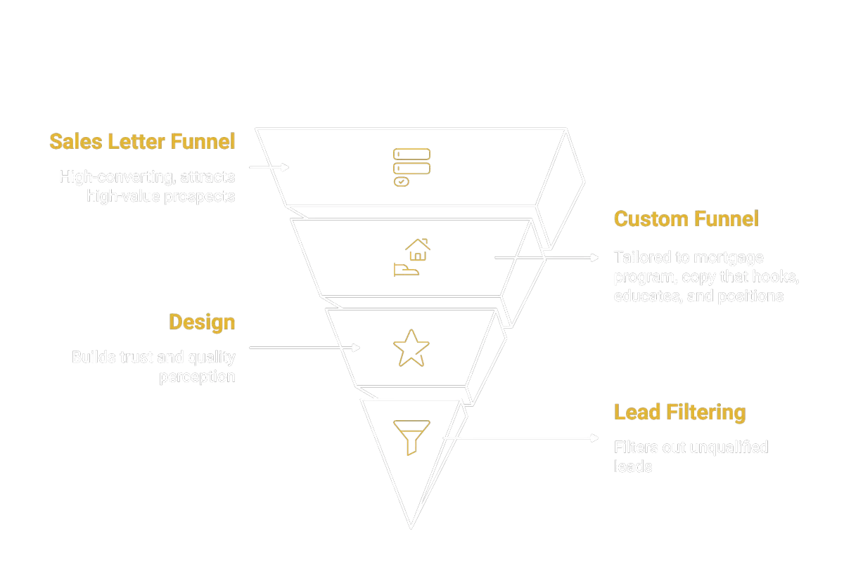 Then, we craft a custom funnel tailored to your mortgage program, with copy that hooks, educates, and positions you as an authority.