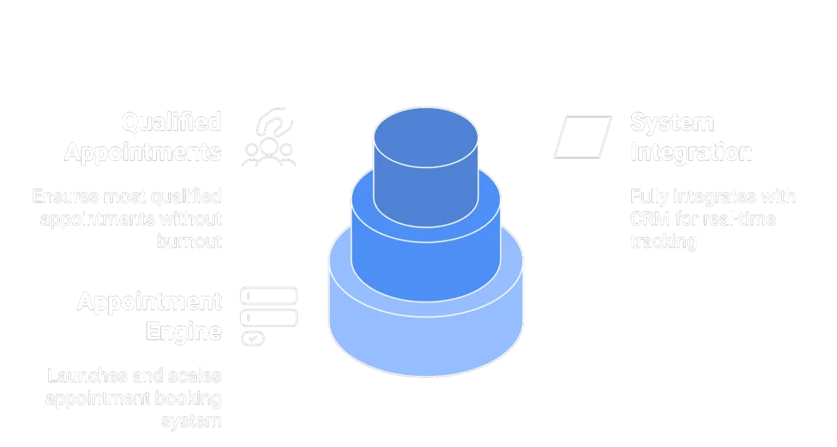 All systems are fully integrated into your CRM. Appointments are tracked in real-time. You focus on closing; we handle the rest.